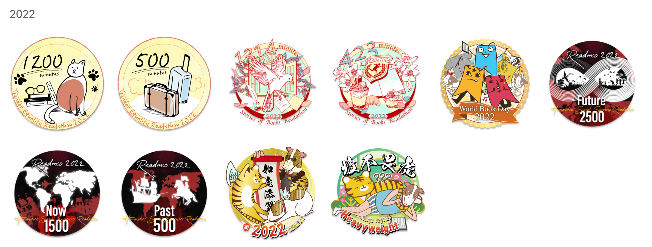 这是我非常喜欢的读书活动,阅读给定书单里的书目,根据时长会获得个人资料页上的徽章。活动期间规定的书目都是打折的。每年各个月份的主题相对固定,比如1月和10月是不限主题的,2月一般是人文社科,7月是漫画,12月是小说。即使主题相同,每年的徽章也是不一样的。放一张我今年已经拿到的徽章: